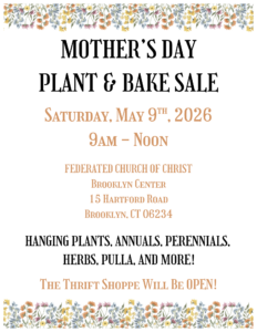 Join us for our annual Mother’s Day Plant & Bake Sale on Saturday, May 9th, from 9am to noon. There will be hanging plants, annuals, perennials, herbs, pulla, and more! The Thrift Shoppe will also be open!